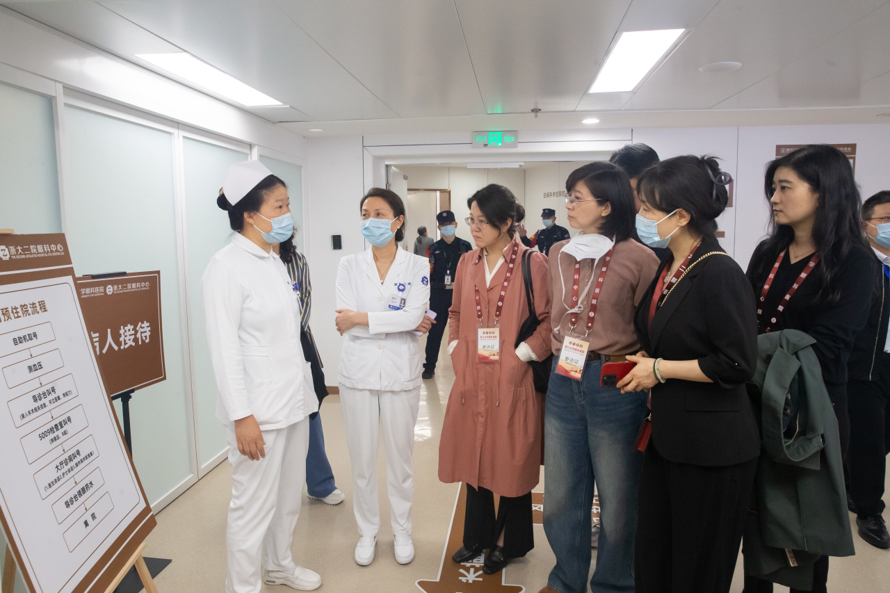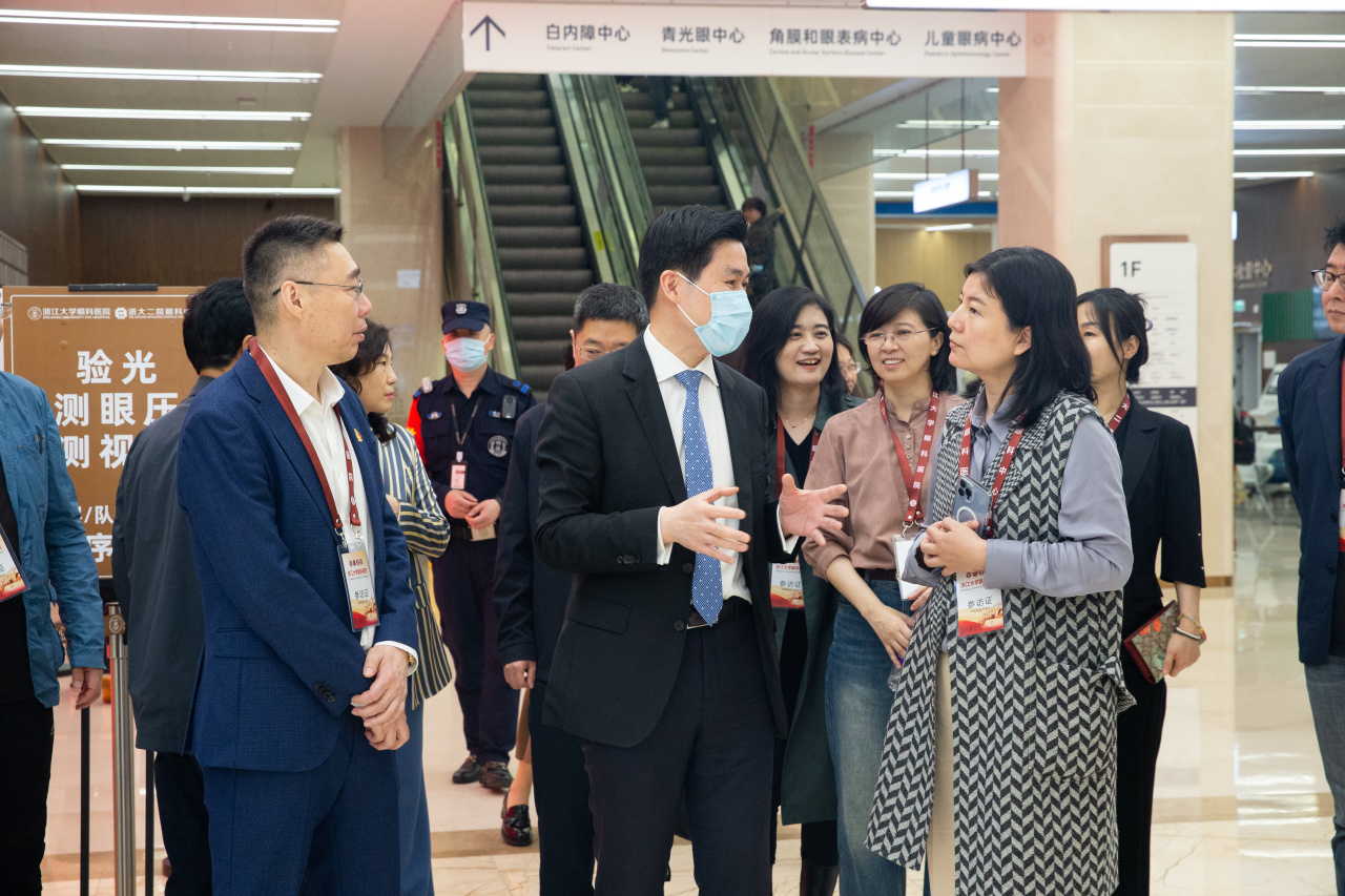 會(huì)前,在姚克教授、沈婷主任、倪海龍主任、董佩芳主任、周科主任等院領(lǐng)導(dǎo)、科室負(fù)責(zé)人帶領(lǐng)下,來(lái)訪客人還實(shí)地調(diào)研了浙江大學(xué)眼科醫(yī)院門(mén)診、病房、手術(shù)室、實(shí)驗(yàn)室等區(qū)域,深入了解了醫(yī)院整體規(guī)劃布局、軟硬件條件,并給予了“非常震撼”的高度評(píng)價(jià)。