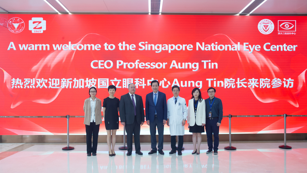 為全面落實(shí)世界一流眼科建設(shè),浙江大學(xué)眼科醫(yī)院長(zhǎng)期致力于加強(qiáng)與全球眼科同道的交流合作,在全球傳播中國聲音,講好中國故事。5月15日,新加坡國立眼科中心院長(zhǎng)Aung Tin應(yīng)邀來院訪問交流,暢談合作事宜,中國科學(xué)院院士、浙大二院黨委書記王建安,浙江大學(xué)眼科醫(yī)院院長(zhǎng)、浙大二院眼科中心主任姚克熱情接待了來訪客人,浙大二院國際交流辦公室副主任李菁,眼科醫(yī)院副院長(zhǎng)、眼科中心副主任葉娟、王凱軍及相關(guān)臨床、職能科室負(fù)責(zé)人參與接待。