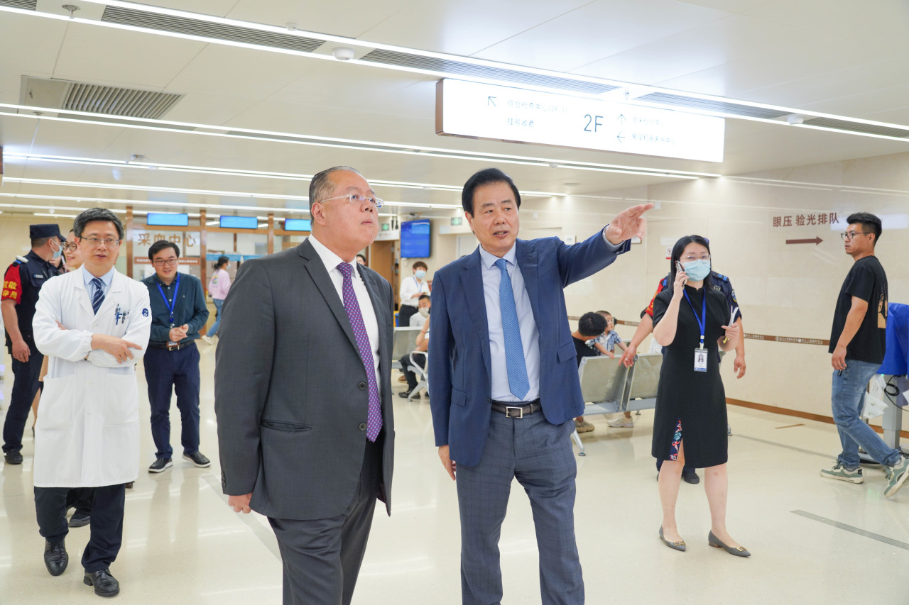 在姚克教授帶領(lǐng)下,Aung Tin教授實(shí)地參觀了眼科醫(yī)院,并與青光眼??凭蛯?瓢l(fā)展、科研創(chuàng)新等作了深入交流。Aung Tin教授高度贊嘆了眼科醫(yī)院團(tuán)隊(duì)、軟硬件和取得的突出成就。