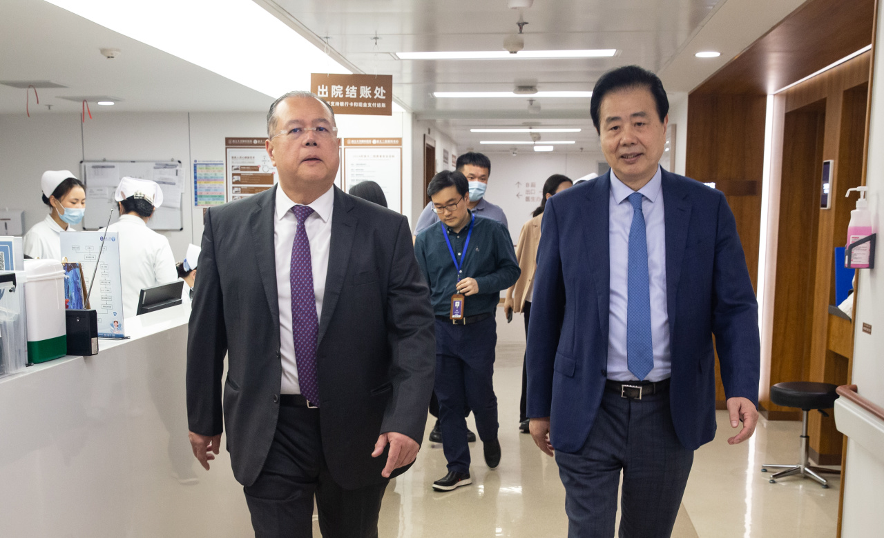 王建安院士、書記代表浙大二院向Aung Tin教授來訪表示了熱烈的歡迎。他簡(jiǎn)要并系統(tǒng)地介紹了浙大二院歷史傳承、發(fā)展情況及對(duì)外交流合作等方面的情況。他表示,浙大二院一直在探索與世界頂級(jí)醫(yī)療機(jī)構(gòu)的合作,致力于成為世界一流醫(yī)院。他期待雙方可以攜手開拓合作新局面,實(shí)現(xiàn)更高質(zhì)量的共贏發(fā)展。
