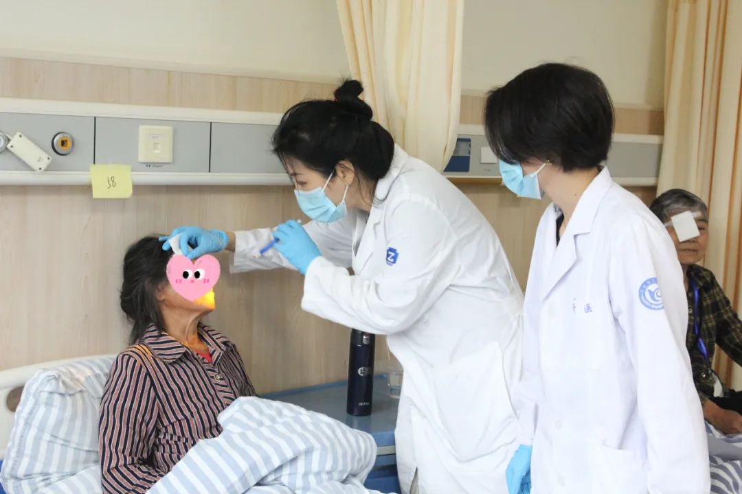 出發(fā)途中,徐雯教授多次提到一位104歲的老太太,醫(yī)療隊(duì)最終在老人家里見(jiàn)到了精神抖擻的老人。老太太姓方,99歲時(shí)由霍亞楠主任醫(yī)師、100歲時(shí)由徐雯教授分別為兩只眼睛做了白內(nèi)障手術(shù)。據(jù)老太太和其女兒說(shuō),老太太如今能自己做針線活,很喜歡看電視,胃口好的時(shí)候能吃兩個(gè)粽子,還很喜歡和人聊天。