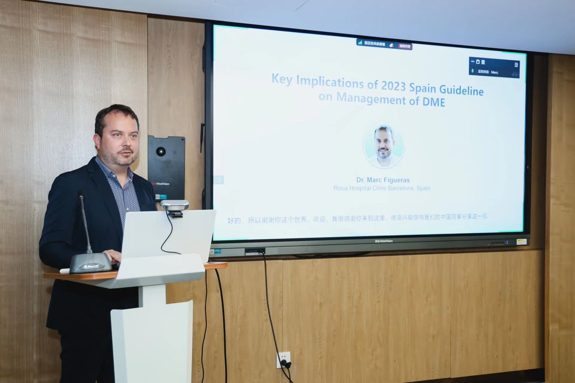 方肖云教授作為會議主席,對于遠道而來的西班牙眼科醫(yī)生Dr. Marc Figueras 及Dr. Francisco J. López表示熱烈歡迎,也期望通過這次的中西交流分享各自的臨床經(jīng)驗,互相切磋學(xué)習(xí),促進DME及RVO-ME診療水平的提升。